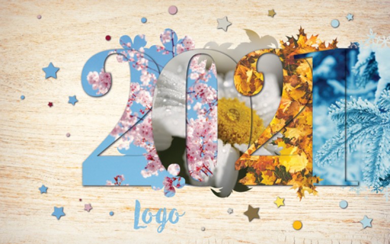 • Als vouw kalender. De achterzijde van de kaart is een jaarkalender, die handig op het bureau past.